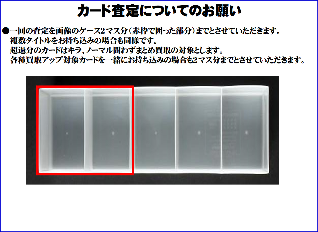 ★カード査定についてのお願い★ 2025年6月2日 2025年9月22日 ★カードの査定に来られるお客様へのお願い★ お持ち込みになる前に必ず下記の注意事項をお読みいただきますよう、お願いいたします。 皆様のご来店お待ちしております!
