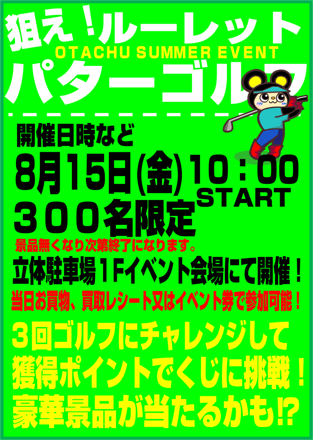 【狙え!ルーレットパターゴルフ】を開催予定!