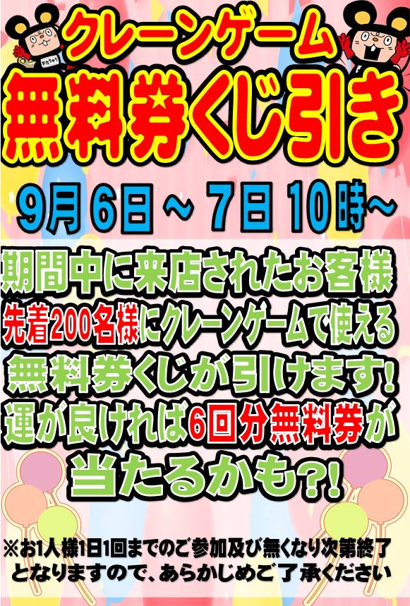 9月最初の週末のイベントは無料券くじ引きとなります!