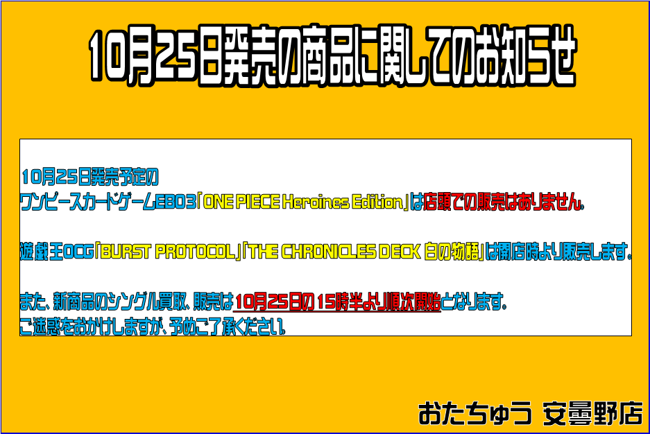 10月25日発売のカード新商品についてのお知らせです