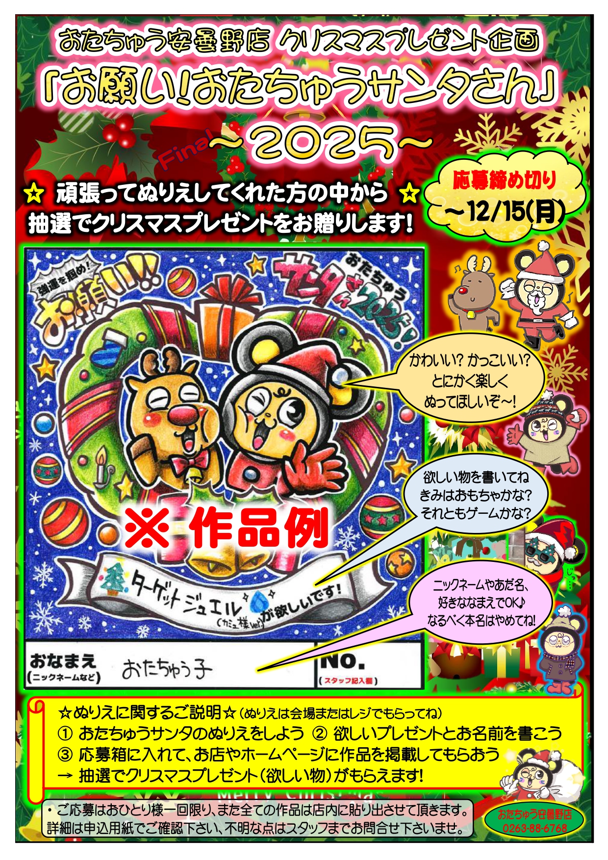 今回は応募がかなり多いので『審査員特別賞』や『優秀賞』なども新たに設けて、クレーンゲーム無料券などの景品をプレゼントします🎅🛷