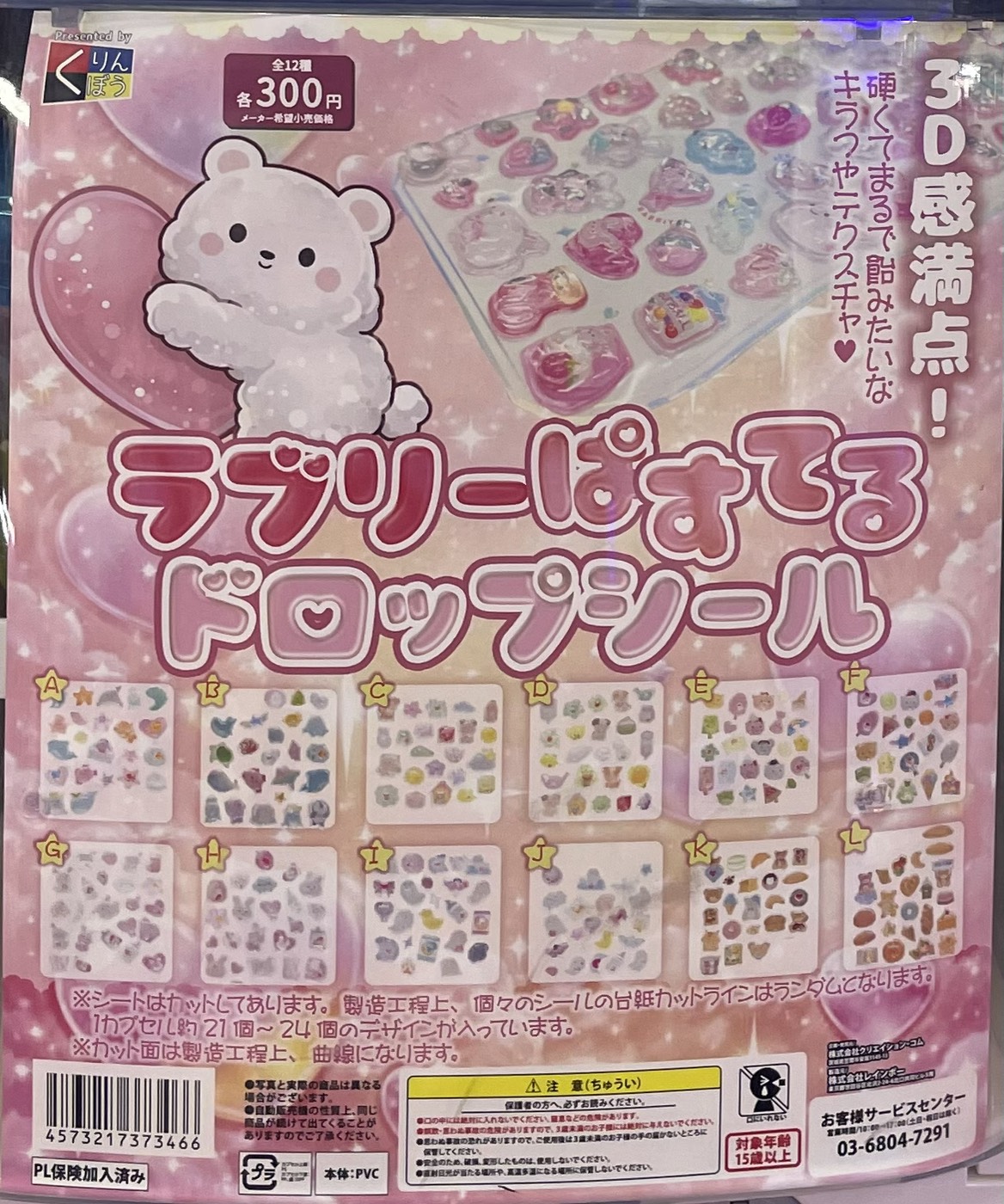■新入荷、再入荷のご案内■ 2026年4月14日 新入荷&再入荷ガチャガチャのご紹介です! ラブリーぱすてる ドロップシール 気になるガチャガチャがありましたら、ぜひご来店下さい! 他にも人気作など沢山ご用意しておりますので是非当店のガチャガチャコーナーにお立ち寄り下さい!