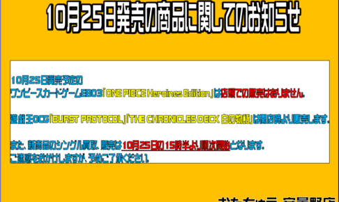 お知らせ10月25日発売のカード新商品についてのお知らせです
